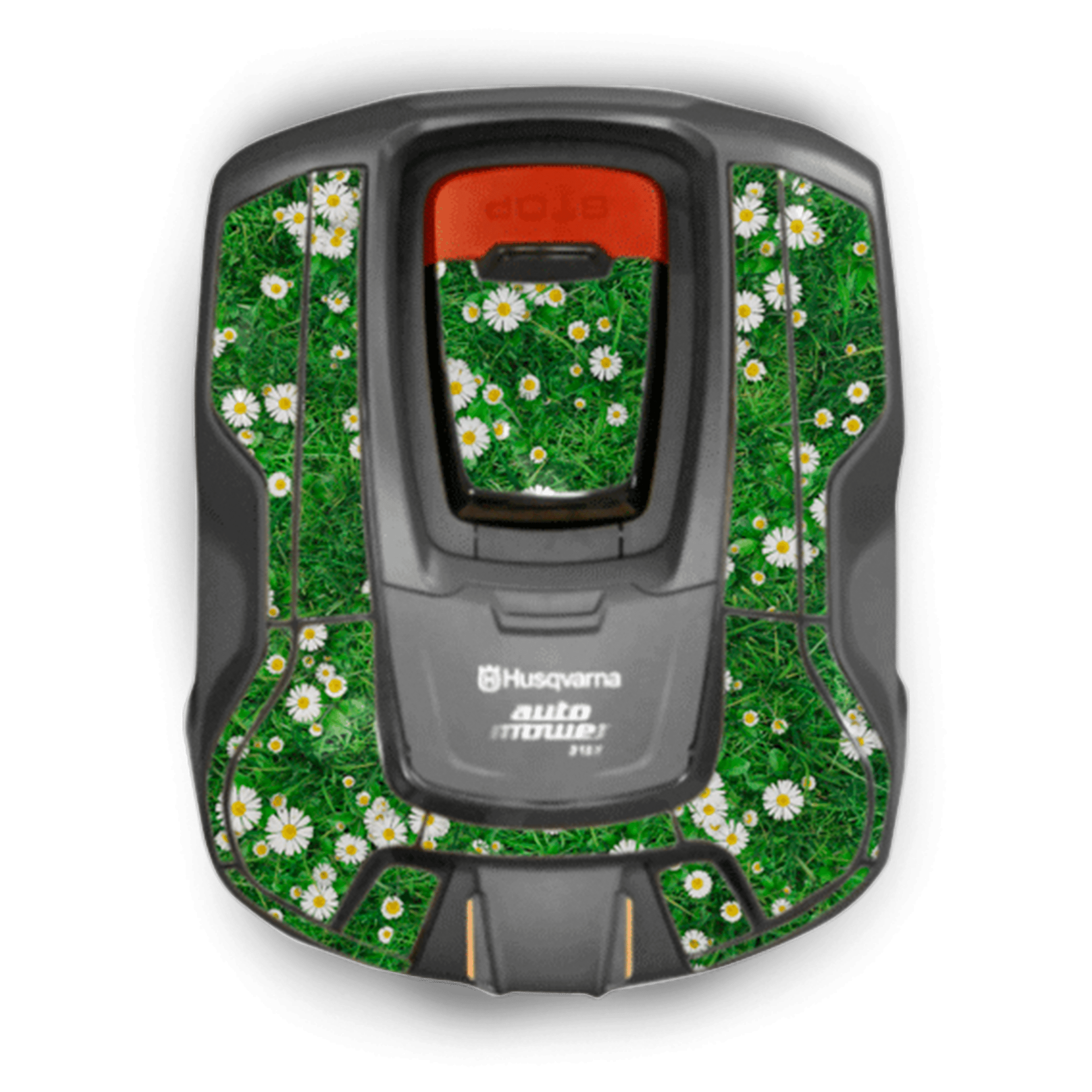 Start blomstersæsonen tidligt ved at personliggøre din Husqvarna Automower® robotplæneklipper med et unikt blomsterengsfolie. Bemærk, at folien ikke er tilgængelig for NERA-modeller.