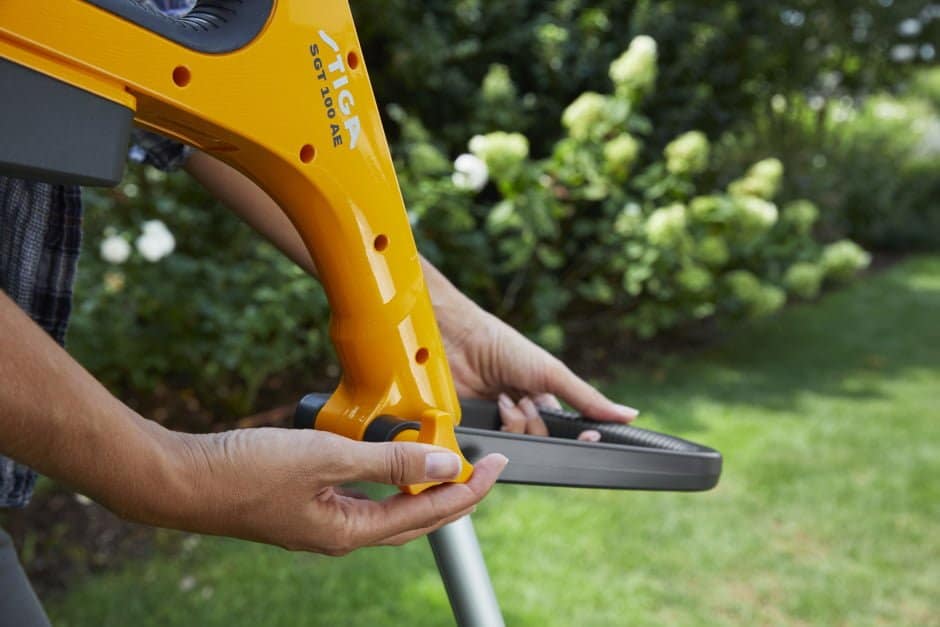 Den batteridrevne græstrimmer STIGA GT 100e Kit gør trimning og kantskæring til en fornøjelse. Denne trimmer leveres med en kraftfuld motor, et optimalt afbalanceret 20 V / 2 Ah batteri og et justerbart loop-håndtag, så du let kan trimme græsset, hvor plæneklipperen ikke kan komme til. Dens automatiske fremføring af trimmerlinen giver dig pålidelig og uafbrudt trimning – mens det fuldt justerbare loop-håndtag giver dig mulighed for at betjene din græstrimmer uden overanstrengelse. For at gøre redskabet rigtig komfortabelt at benytte kan du også justere det teleskopiske rigrør på GT 100e Kit , så længden passer til din højde. Den er også nem at bruge. Med et enkelt klik kan du skifte fra trimning til kantskæring, hvor trimmerhovedet drejes 90° til siden for at gøre dine kanter ekstra fine og skarpe. Trimmerhovedet kan desuden vinkles 45°, hvilket sikrer dig en perfekt trimning alle steder i haven, mens afstandsbøjlen lader dig trimme præcist omkring planter og andre genstande, uden at disse tager skade.