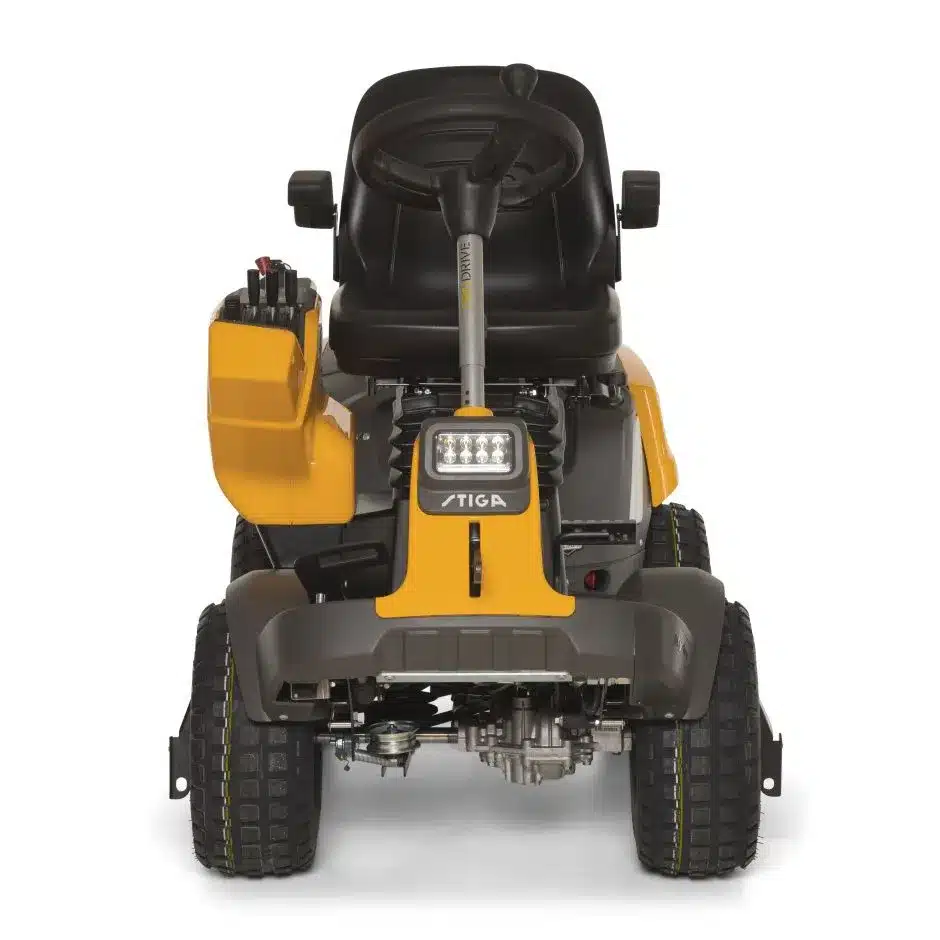 STIGA Park Pro 900 AWX (tidligere Park Pro 740 IOX) er udstyret med 50/50-knækstyring og et frontmonteret klippeaggregat – en kombination, der for det første optimerer manøvredygtigheden uden risiko for, at bagenden støder ind i noget ved et uheld, og for det andet giver et klart, uhindret udsyn over arbejdsområdet, så det er muligt at klippe komplekse plæner med præcision. Det frontmonterede aggregat giver også mulighed for at komme ind i svære hjørner, der ville være umulige at nå med et midtermonteret aggregat. Som seriens kraftigste maskine er Park Pro 900 AWX udstyret med en højtydende 2-cylindret 688 cm³ Honda-motor, der yder hele 16,5 kW (ved 3200 o/min.), og som takket være sin 2-cylindrede V-konstruktion og OHV-teknologi har en helt jævn gang med et lavt vibrationsniveau og et højt moment, lavere emissioner og en fremragende brændstoføkonomi. Motoren er bygget til at holde i mange år med bl.a. tryksmøring og et to-element luftfilter. Park Pro 900 AWX er bygget med ergonomi og brugervenlighed for øje – den har en elektrisk PTO-kobling for nem tilkobling af knive eller tilbehør, et ergonomisk sæde med høj ryg og armlæn, så tidskrævende opgaver kan udføres nemt og bekvemt, samt intuitiv elektrisk indstilling af klippehøjden ved hjælp af en knap. Modellen har desuden servostyring, der gør den let og ubesværet at styre. En pedalbetjent hydrostatisk transmission bidrager til køreglæden ved, at føreren nemt kan øge eller sænke farten uden at skulle skifte gear manuelt, mens 4-hjulstræk betyder, at skråninger, ujævnt terræn og mudrede områder kan forceres uden problemer. Den har et brugervenligt betjeningspanel på siden, så alle de vigtige knapper er inden for rækkevidde. Trækkrog medfølger som standard.