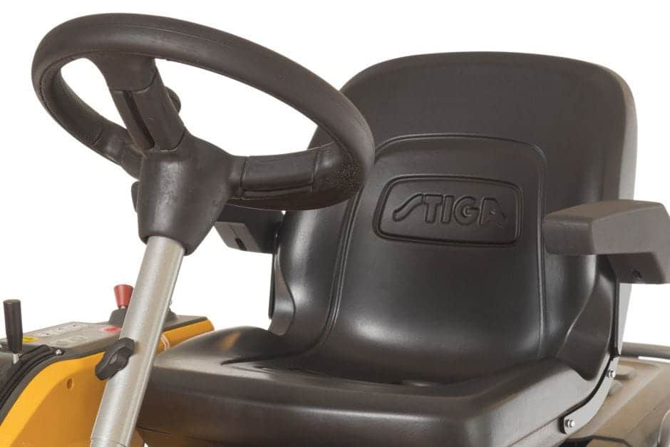 STIGA Park Pro 900 WX (tidligere Park Pro 540 IX) er udstyret med et frontmonteret klippeaggregat, der ikke kun giver føreren et klart, uhindret udsyn over arbejdsområdet, men også gør det muligt at klippe områder, der ville være svære at nå med en traditionel rider eller havetraktor. Takket være 50/50-knækstyringen, hvor maskinens bagende følger forenden nøjagtigt, er Park Pro 900 WX fantastisk manøvredygtig og kan køres, uden at føreren behøver at være bekymret for, om bagenden støder ind i noget ved et uheld. En anden funktion, der bidrager til manøvredygtigheden, er en pedalbetjent hydrostatisk transmission med en jævn, trinløs regulering af kørehastigheden, mens den elektriske klippehøjdejustering gør det hurtigt og nemt at vælge den mest effektive klippehøjde. Park Pro 900 WX er udstyret med en 2-cylindret 688 cm³ Honda-motor, der yder hele 14,3 kW (ved 3200 o/min.) og er forsynet med både tryksmøring og et to-element luftfilter, som sikrer en fremragende driftssikkerhed i mange år. En 2-cylindret V-motor giver minimal vibration og maksimalt moment, mens OHV-teknologi bidrager til et lavere brændstofforbrug og støjniveau. Denne maskine er udstyret med en elektrisk PTO-kobling – en praktisk funktion, der gør det utroligt nemt at aktivere knivene eller frontmonteret tilbehør. Maskinen har et justerbart sæde med høj ryg og armlæn, der sammen med servostyringen gør den til en fornøjelse at køre, og alle de vigtigste knapper er placeret lige ved hånden på det brugervenlige betjeningspanel i siden. Af andre vigtige funktioner kan nævnes 2-i-1-klippesystemet på alle STIGAs klippeaggregater (Multiclip og bagudkast) for stor alsidighed og 4-hjulstrækket for et godt greb, selv i krævende terræn. Maskinen kan bruges med flere forskellige Quick Flip-aggregater, der alle kan vinkles for rengøring og vedligehold. Aggregaterne fås i en bredde fra 110 til 125 cm, så du kan vælge det, der bedst passer til størrelsen og udformningen af din plæne. Trækkrog medfølger som standard.